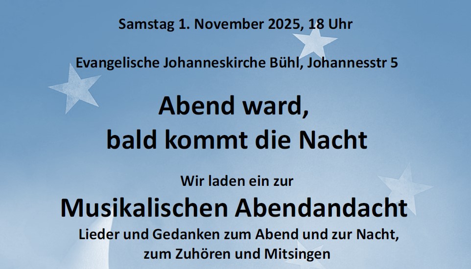 Samstag 01.11.2025 | 18:00 | Musikalische Abendandacht | Johanneskirche | |