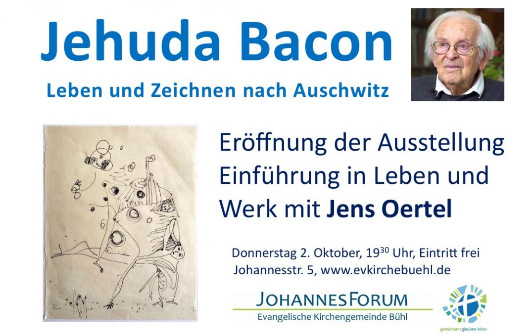 Am Donnerstag, 2. Oktober um 19.30 Uhr laden wir zu einem besonderen Auftakt in unser schönes JohannesForum ein. Eröffnet wird eine Ausstellung, die bis Mitte/Ende November in unserer Kirche und im Forum zu sehen sein wird, mit Zeichnungen und Bildern des Auschwitz-Überlebenden und Künstlers Jehuda Bacon.