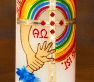 Der Regenbogen steht für den ersten Bund Gottes mit dem Menschen (nach der Sintflut, Gen 9,12-17) und für die Fülle und Vielfalt des göttlichen Lichts (Gen 1,3; Joh 8,12), das sich in unserem Leben bricht und diese Welt – trotz allem – bunt macht und schön. Und Gottes starker Arm, der uns nicht untergehen lässt (Mt 14,31) und aus dem tiefen Wasser zieht ins Leben und ins Wasser des Lebens (Ps 36,9-10). Dazu die Umschrift der aktuellen Jahreslosung: „seid barmherzig wie auch euer himmlischer Vater barmherzig ist“ (Lk 6,36)! Weil wir im Zeichen des Osterlichts nicht nur Bedürftige und Empfangende sind, sondern für uns und andere aus dem Vollen schöpfen, als Reflektoren und Verstärker, als Scheinwerfer und Menschen, die im besten Sinne Feuer gefangen haben und das Licht in diese Welt tragen (Mt 5,16).